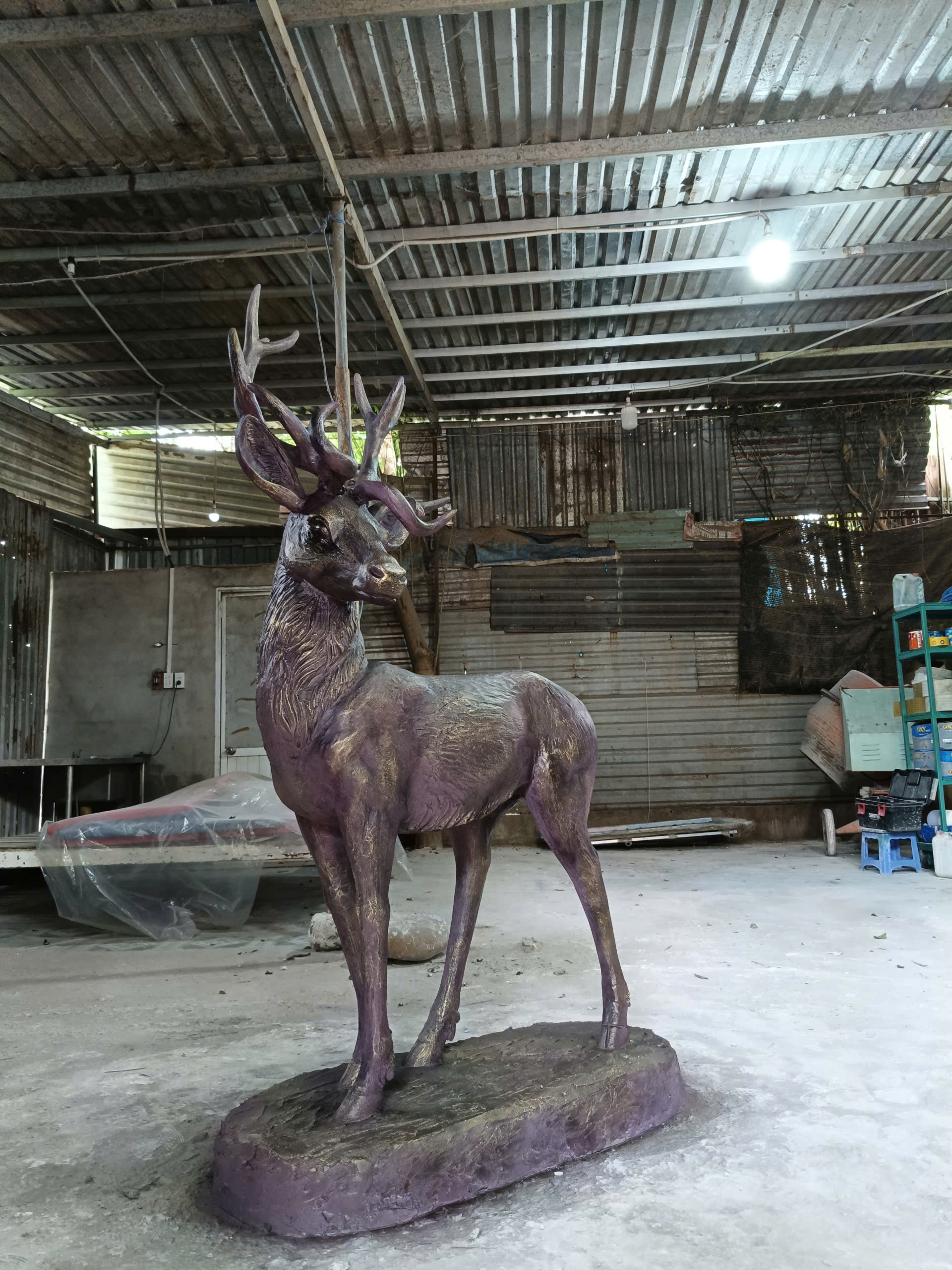Ngoài ra, vật liệu composite cho phép tạo hình linh hoạt, bề mặt mịn và có thể sơn giả nhiều chất liệu khác nhau, từ đá, kim loại đến gỗ, giúp tác phẩm đạt tính thẩm mỹ cao.